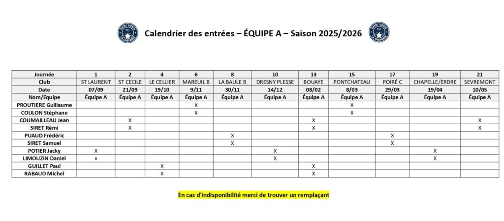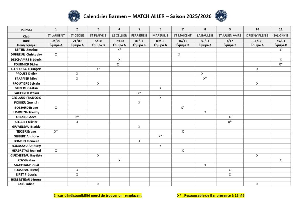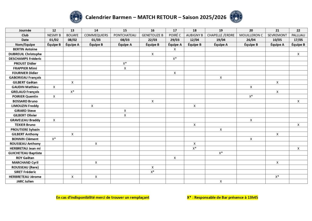PLANNINGs (BAR, entrÉes, DÉLÉGUÉS, BÉNÉVOLEs)